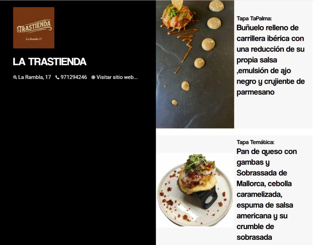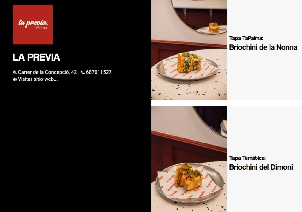 Y del 5 al 9 de noviembre, podrás recorrer Palma y disfrutar de todas las propuestas de los 34 establecimientos participantes durante la tradicional Ruta de Tapas.